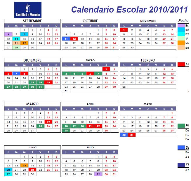 El calendario escolar para el curso 2010/11 en la provincia de Guadalajara es: abrir pdf